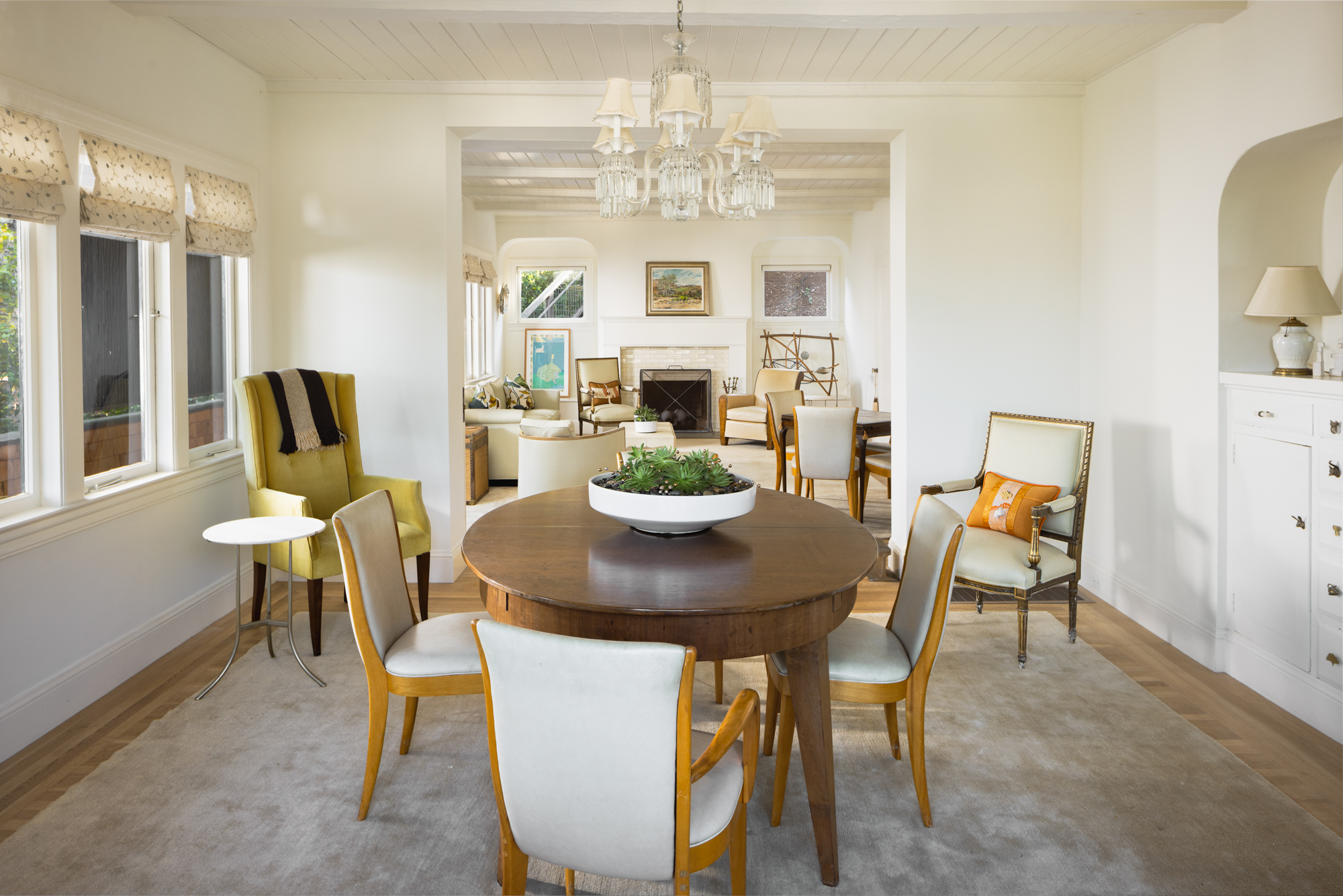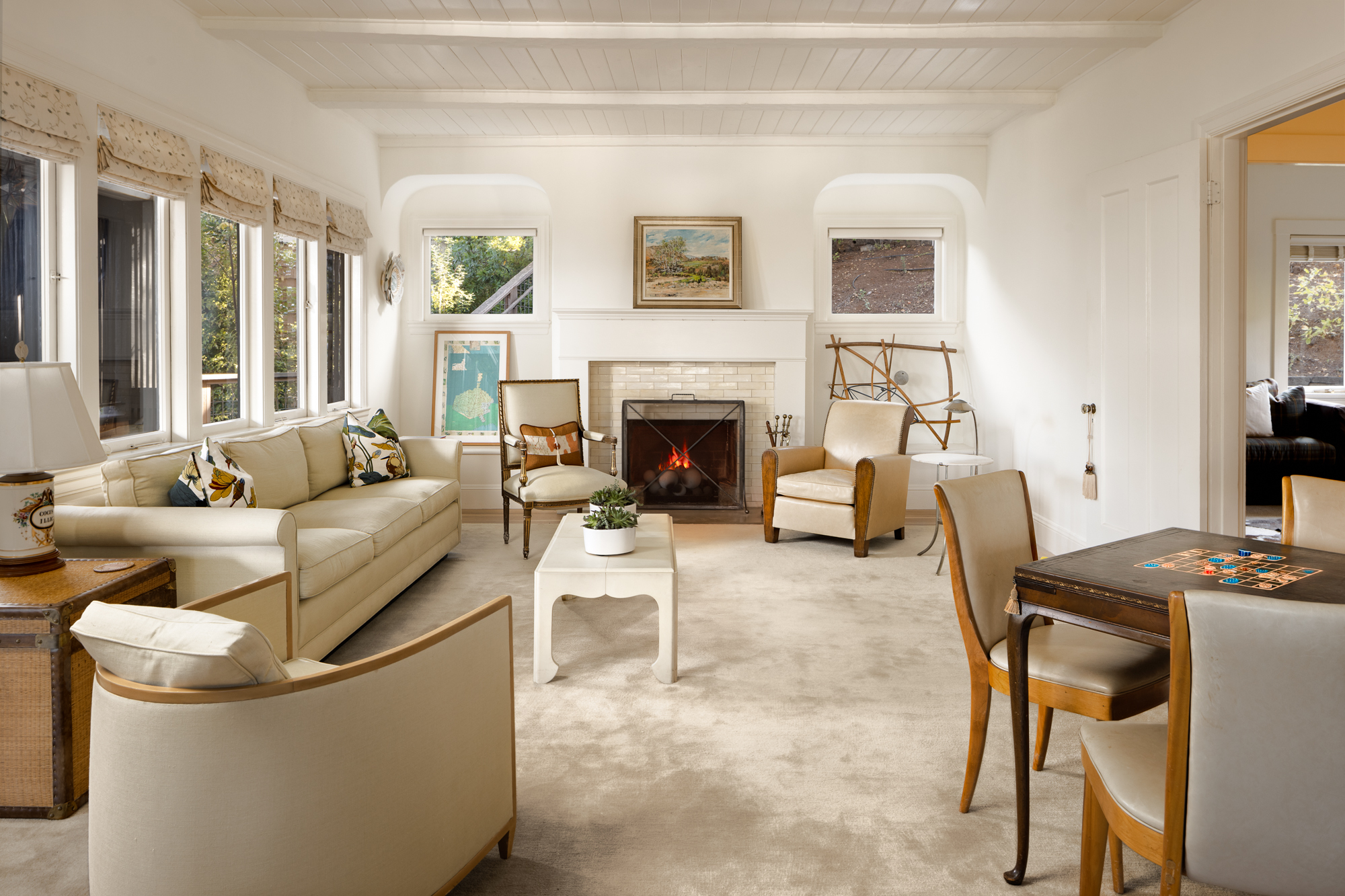 Light-filled living room with a fireplace